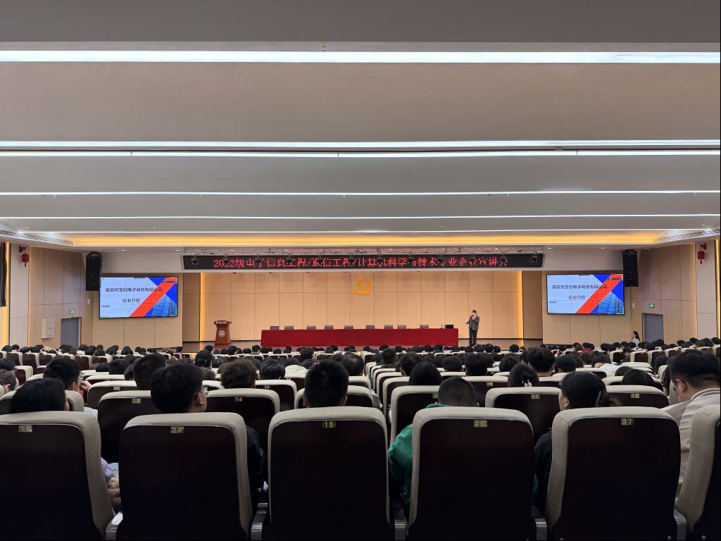 为扎实推进2026届学生专业实习工作,搭建校企协同育人平台,10月15日晚,Beat365唯一官方网站电子与信息工程学院在学校一楼报告厅成功举办专业实习宣讲会。本次活动面向2022级电子信息工程、通信工程及计算机科学与技术三个专业300余名学生,特邀安徽硅砚人工智能基础资源技术有限公司与安徽宝创电子商务有限公司两家本地优质企业来校,为学子们带来专业对口的实习岗位与成长机会。