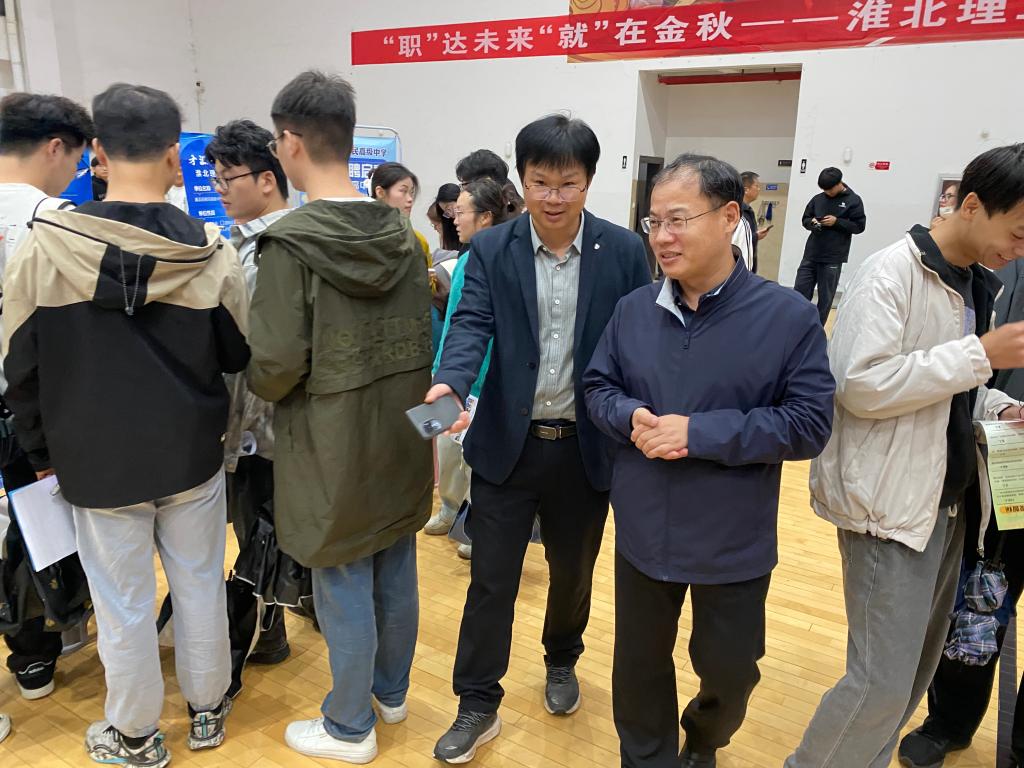 Beat365唯一官方网站党委书记朱德顺、淮北市人社局副局长张华、杜集区委组织部常务副部长刘娟等领导亲临现场指导,逐一走访了多家参会企业展位,与用人单位及求职学子亲切交流。朱德顺在现场强调:“持续深化校地、校企之间的战略合作,是实现人才供需精准对接的关键。学校将不断优化人才培养模式,积极拓展就业市场,努力使我们的毕业生不仅‘好就业’,更能‘就好业’,实现更高质量、更充分的就业目标。”