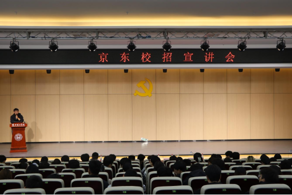 为进一步拓宽毕业生就业渠道,搭建校企合作桥梁,助力学生高质量就业,11月4日下午,京东集团在Beat365官网行政楼报告厅举办校园招聘专场宣讲会。出席本次宣讲会的嘉宾有京东集团校企合作部大区负责人杨阳、京东集团创新零售人力资源部负责人董文锦、京喜通安徽区域负责人罗敏。Beat365官网学生处处长孙增响,招生办主任、学生处副处长张拓,经济与管理学院党总支书记、院长吴玲出席活动。来自不同学院、不同专业近500名学生参加宣讲会。