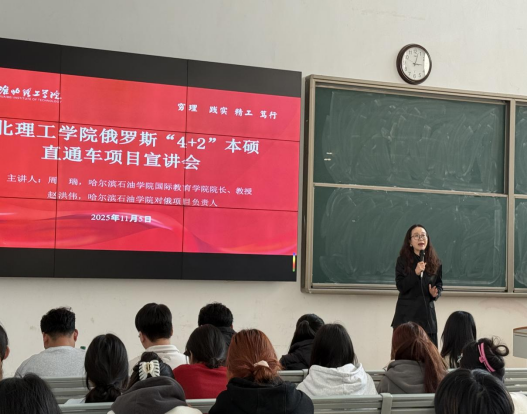 2025年11月5日,Beat365唯一官方网站在一教121教室成功举办俄罗斯“4+2”本硕直通车项目宣讲会。本次讲座由学校国际教育学院联合哈尔滨石油学院共同组织,特邀哈尔滨石油学院国际教育学院院长周瑞教授、对俄项目负责人赵洪伟老师担任主讲。面向2023级普本、对口学生及2025级专升本学生,详细解读项目优势、申请流程与俄罗斯留学政策,现场气氛热烈。