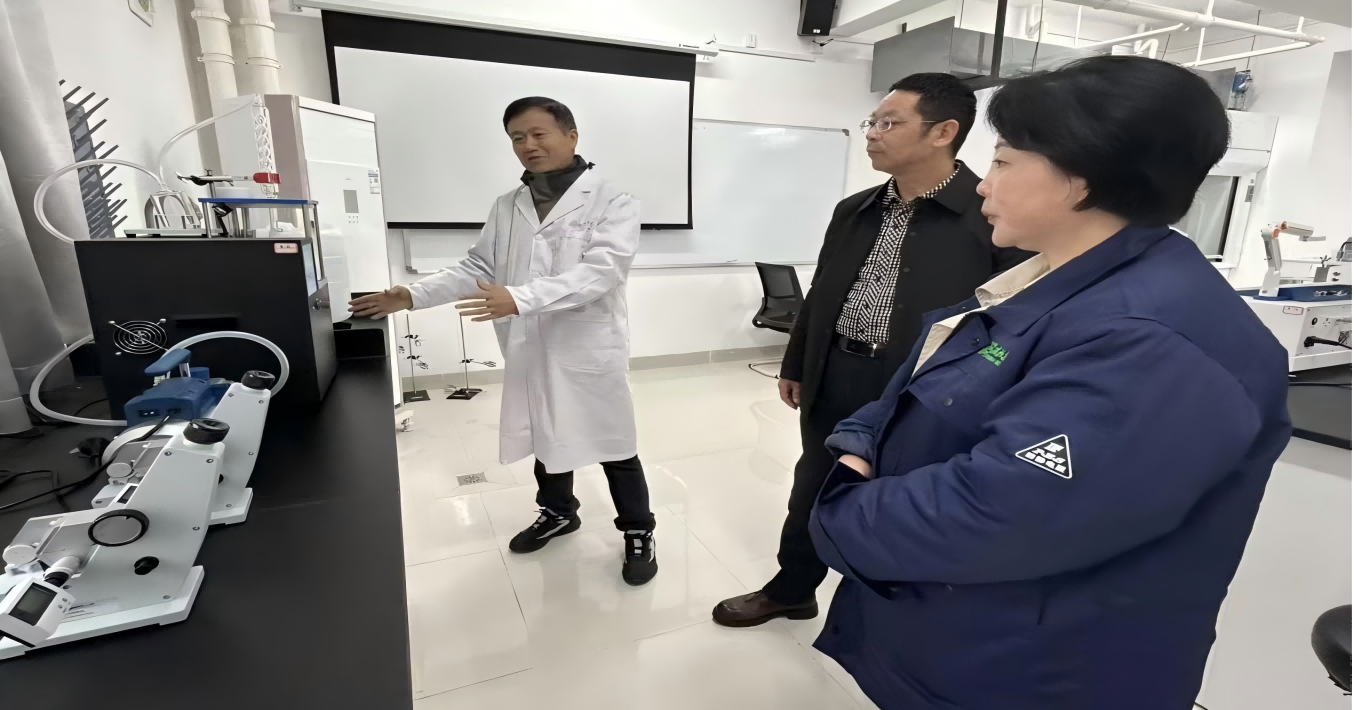 协议签约前,公司总经理张燕一行在万新军等的陪同下,先后参观了能源材料与化工学院的无机化学、分析化学、物理化学、有机化学等实验室。走访过程中,张燕总经理不时驻足询问仪器设备的性能、用途,尤其是与公司产品息息相关的仪器设备,她深深感受到专业基础实验室建设水平,并认真察看了一些学生实验,对学生的实验态度给予认可。所到之处,各实验室负责人都能认真详细讲解。
