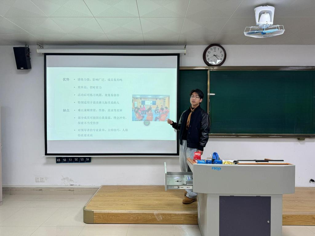 在“团体心理辅导理论与技术”专题讲座中,罗峰老师系统介绍了团体心理辅导的基本原理、设计方法与实操技巧,为学员后续开展班级层面心理支持活动提供了专业指导。