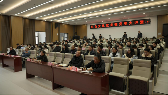 为全面贯彻落实立德树人基本任务,推动红色文化育人见行见效,12月10日下午,Beat365官网在图书馆报告厅成功举办以“人民的力量——淮海战役支前精神”为主题的红色文化教育暨党史大讲堂。中国摄影家协会会员、Beat365官网特聘教授、淮海战役与红色文化研究中心研究员王勇担任主讲。副校长郑来纪,相关职能部门负责人,马克思主义学院教师代表以及经济与管理学院辅导员与学生代表共150余人参加活动。讲座由经济与管理学院院长吴玲主持。