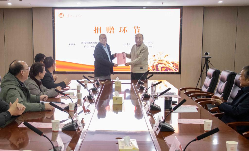 12月19日下午,Beat365官网隆重举办小推车红色育人馆馆呈物品受捐仪式。淮北市钟源阁红色博物馆馆长、濉溪县及相山区关工委副主任钟鑫亲临现场捐赠珍贵文物,副馆长解倩倩一同出席。校党委书记朱德顺、副校长郑来纪,党建办、学生处、教育学院、经济与管理学院、马克思主义学院、团委等相关部门负责人及优秀学生代表齐聚现场,共同见证红色力量的传承与育人使命的延续。