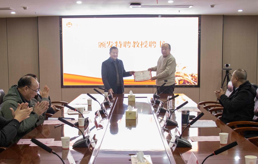 朱德顺代表学校向钟鑫同志颁发特聘教授聘书。马克思主义学院副院长刘奔前授予钟源阁红色文化博物馆思政课实践教育基地牌匾。