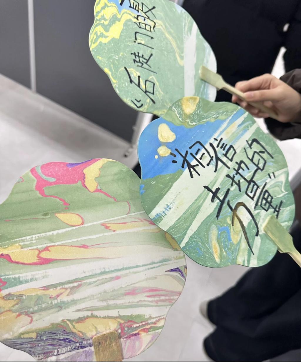 漆扇创作时,一笔一染间晕开古风雅韵,传统工艺与个人创意碰撞出独特火花,同学们在扇面上细致勾勒,既藏着对生活点滴美好的珍视,也透着面对挑战的坚毅从容。