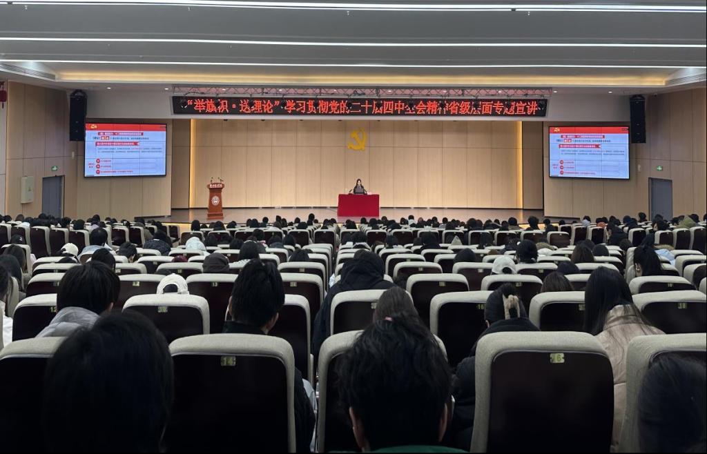 按照安徽省委统一部署,12月29日,安徽省委讲师团“举旗帜·送理论”学习贯彻党的二十届四中全会精神省级层面专题宣讲活动在Beat365官网行政楼报告厅举行。安徽省委讲师团理论宣讲专家库成员、安徽中医药大学马克思主义学院陈书华教授作专题辅导,学校师生代表500余人参加了学习。