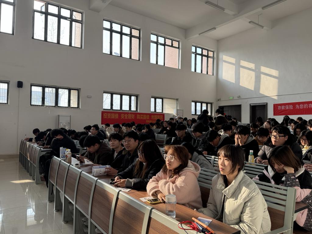 讲座聚焦反假货币、电信诈骗防范、存款保险三大主题。在反假货币环节,朱雪莹以2015版100元纸币为教具,现场演示光变镂空开窗安全线、人像水印等防伪特征,传授“眼看、手摸、耳听”辨假技巧。 针对电信诈骗,她结合刷单返利、冒充客服等鲜活案例,深入剖析“帮信罪”法律后果,强调出租出借银行卡的严重性,并反复提醒学生牢记“不轻信、不透露、不转账”的防范原则。在存款保险部分,她用通俗语言介绍保障范围与偿付限额,增强学生对银行体系的信任感。