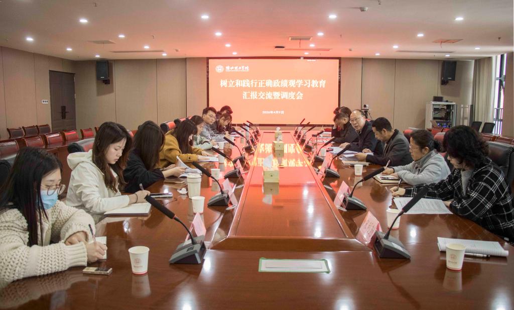 4月9日,学校召开树立和践行正确政绩观学习教育汇报交流暨调度会。学校学习教育专班全体人员、各二级党组织副书记及组织员参加会议。