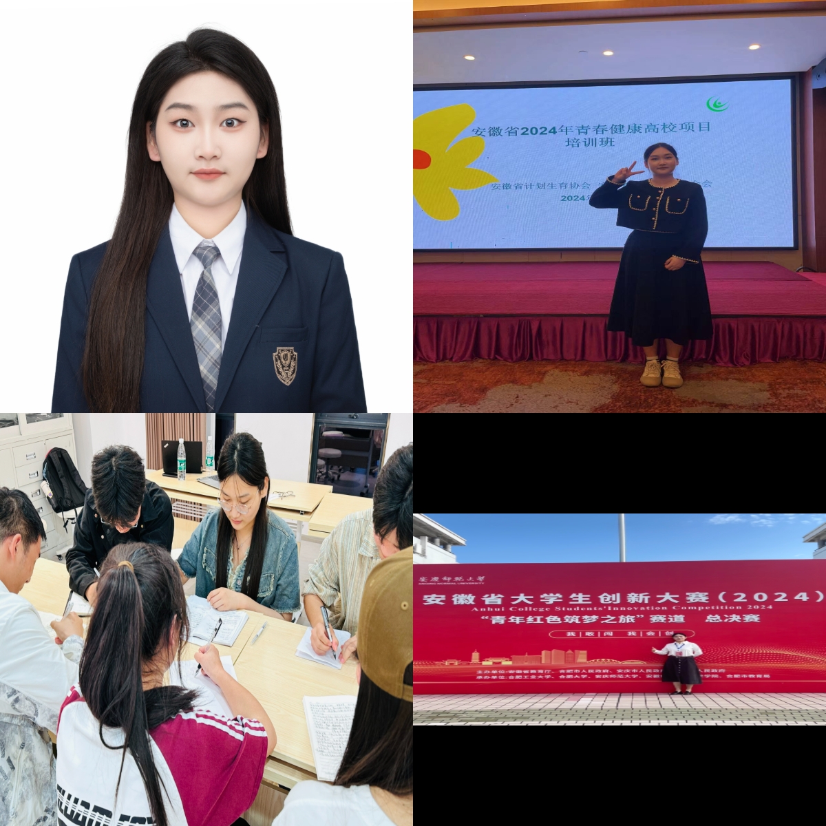积极参加学科类等各类竞赛。曾获2024年“智汇青春 创享未来”杜集区大学生创新创业大赛三等奖、第五届安徽省中华职业教育创新创业大赛校级三等奖、2024年安徽省师范生技能大赛优胜奖、第十五届全国大学生电子商务“创新、创意及创业”挑战赛校级二等奖、安徽省大学生创新大赛(2025)校赛高教主赛道二等奖。2025年参与的项目“文化茁苗——展东方之美,尚“淮”风教育”获得安徽省大学生创新创业训练计划项目立项。