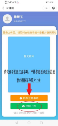 2.拍摄需请他人协助,采用后置摄像头拍摄,不得使用前置摄像头自行拍摄,拍摄头像需与拍摄相框周围的虚线完全吻合;