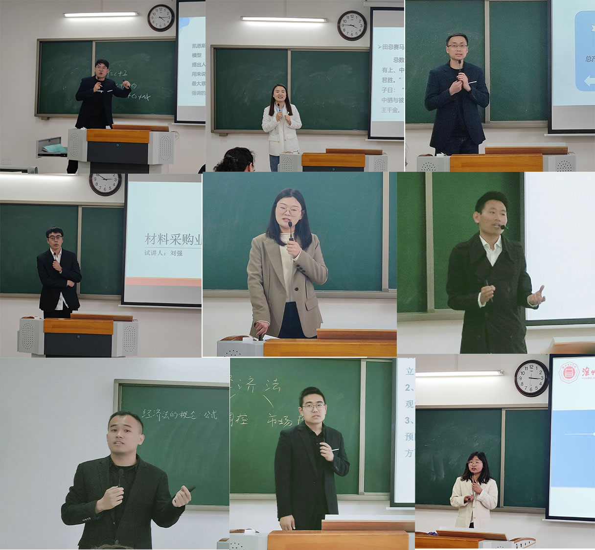 为更好的推动课堂教学质量的提高,全面提升教师教学能力,站稳讲台、打造金课,马克思主义学院和经济与管理学院于4月13日下午1点50分在一教215教室组织开展了两种不同形式的教学展示评比活动暨首届青年教师课堂教学比赛的学院选拔赛,马克思主义学院采用的“同课异构”比赛方式,经管学院采用微课展示比赛方式。本次活动由吴玲院长主持,两个学院全体教师参与,学校督导专员朱德顺和副校长汪建利坐镇活动现场进行观摩和指导。