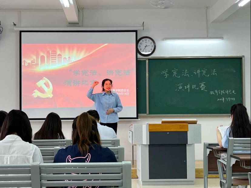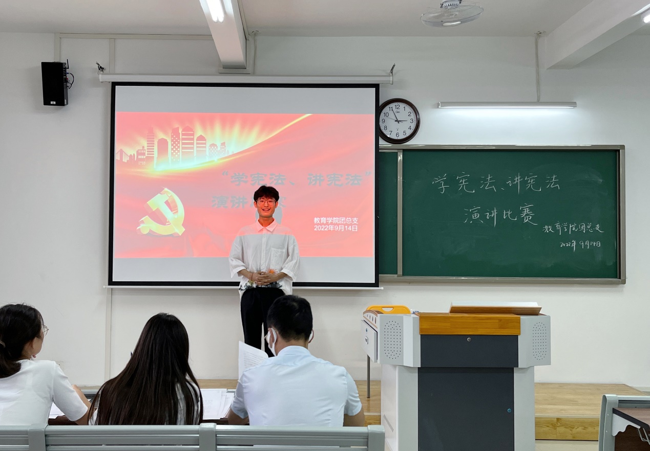 宪法是立国之法宝、强国之重器。为加强宪法宣传教育,提升大学生法治素养。9月14日下午学院在2教416教室举办“学宪法、讲宪法”演讲比赛。参赛选手围绕着宪法与国家、宪法与社会、宪法与个人,结合法治人物及故事或以身边小事为出发点,从不同角度阐述自己对宪法的理解与感悟,讲宪法故事,谈法律知识,赢得了评委老师和在场同学的阵阵掌声。选手们激情饱满的演讲为在场的同学带来一堂别开生面的宪法知识普及课,彰显了Beat365官网青年大学生学法、知法、懂法、守法的热情。经过评委老师们的讨论打分,本次比赛公布获奖名单为:顾代飞、李梦远荣获一等奖;陈县男、梁若楠荣获二等奖;杜越、邵芳、徐玲玲荣获三等奖。