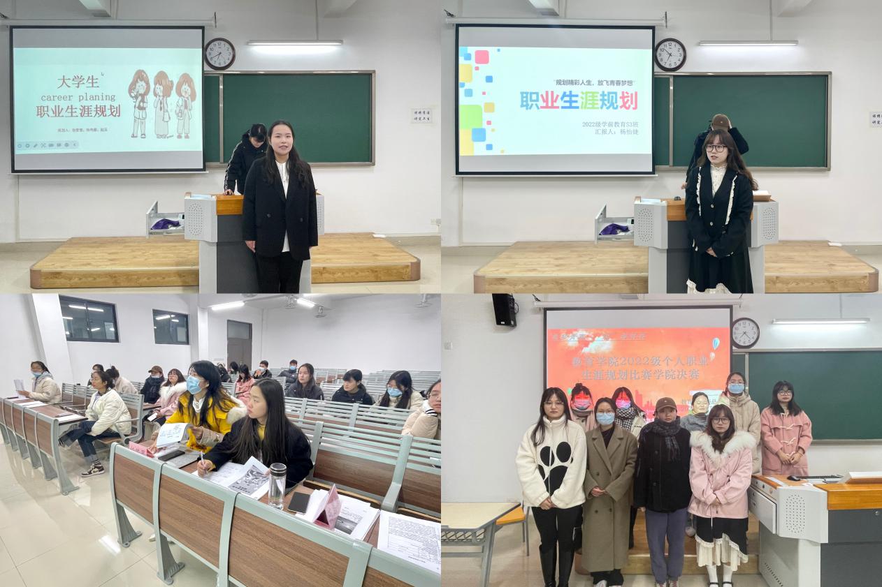 为落实立德树人根本任务,发挥“以赛促学、以赛促教”的积极作用,进一步深化大学生职业生涯规划和创新创业教育,提升大学生职业生涯规划能力,为未来职业发展奠定基础。教育学院自10月中旬以来在全体2022级专升本学生中开展了“职业生涯规划大赛”活动,活动得到了同学们的热情支持和广泛参与,参赛项目分职业规划类和创新创意类两类,经班级初赛后,最终共28个项目进入本次院级决赛。决赛于12月2日晚在1号教学楼413、414、415、416教室分组举行,各比赛小组评委由辅导员老师担任。