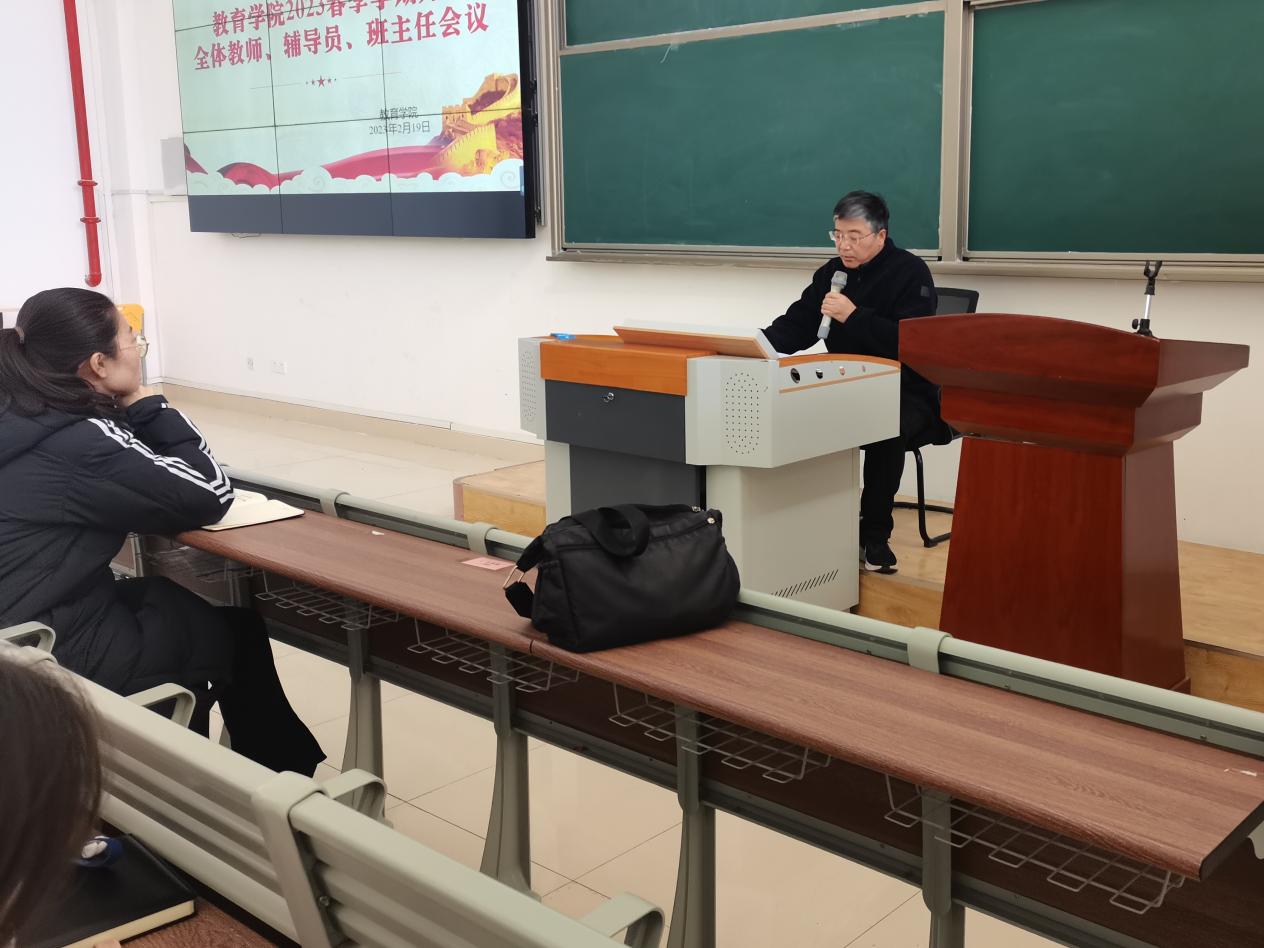新学期新起点,为做好新学期教学、学生管理等各项工作,教育学院于2月19日下午在1教121教室召开全体教师、辅导员、班主任大会。此次会议旨在总结上学期的各项工作,并对新学期的工作提出展望与期待。
