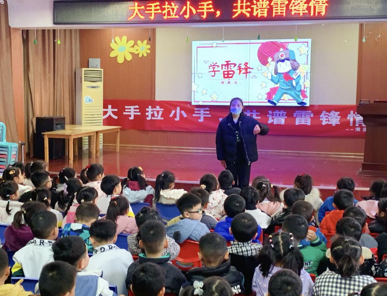 为进一步发扬雷锋精神,弘扬社会正能量,用榜样力量点燃新时代希望,传承红色基因,将雷锋精神与爱国情怀厚植于幼儿心中。教育学院于3月1日下午3点举办“大手拉小手,共谱雷锋情”走进幼儿园雷锋志愿活动。活动由学院辅导员郭鸿鑫、孙虎老师带领8名学前教育专业的学生前往淮北市商业局幼儿园开展活动。