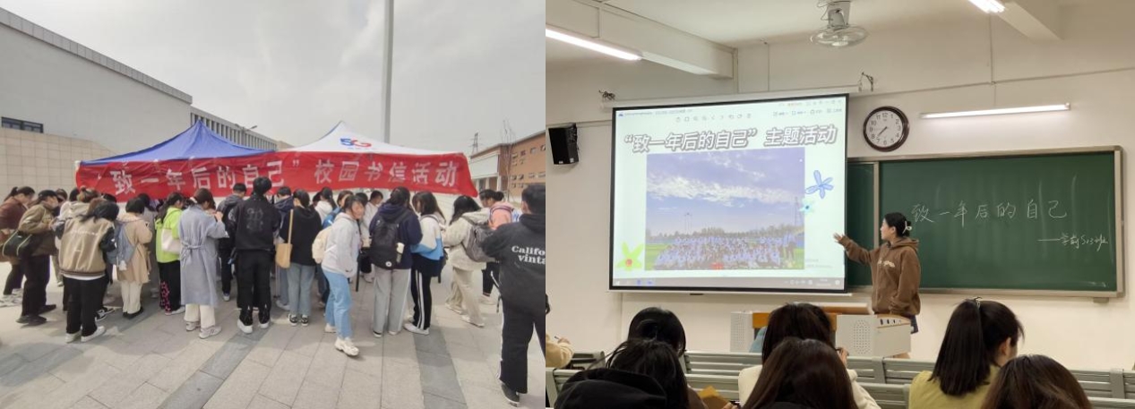 为了更好地引导学生珍惜当下、规划未来,Beat365唯一官方网站教育学院3月15日—17日在体育馆前广场成功举办“致一年后的自己”校园书信撰写活动。活动由2022级辅导员陈慧慧老师指导,2022级学前教育(专升本)9-14班同学在校园宣传、组织。