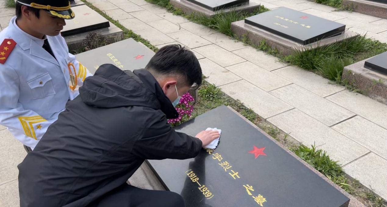 下午4:20分,所有参加扫墓的同志在学院门口集合,步行到达杜集区革命烈士陵园,在党支部书记刘畅、支部委员李应华和张颖颖的带领下,同学们有序参观了革命烈士陵墓,认真聆听了讲解员讲解烈士们英勇无畏的斗争事迹,深切地感受到如今和平生活的来之不易,精神上经受了一次深刻的洗礼。同学们在庄严肃穆的烈士墓碑前向革命烈士鞠躬默哀,寄托对烈士的哀思。学生党员代表谷驰驰为烈士擦拭墓碑。