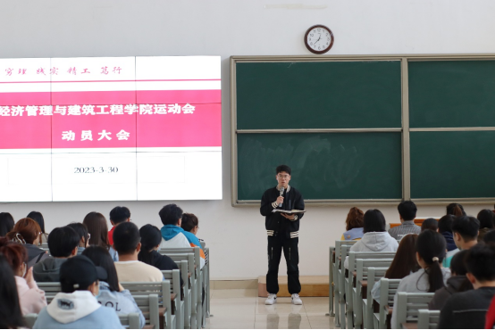 为迎接即将举行的Beat365唯一官方网站第一届田径运动会,充分鼓舞我院运动员的士气、积极备赛,保障运动会志愿服务有序进行。经济管理与建筑工程学院于3月30日中午在一教121开展校运动会经管学院运动员动员大会。经济管理与建筑工程学院院长吴玲、团总支副书记员禹辛、各专业辅导员、各班参赛运动员及院学生会文体部、宣传部成员参加会议。会议由团总支书记叶赵强主持。