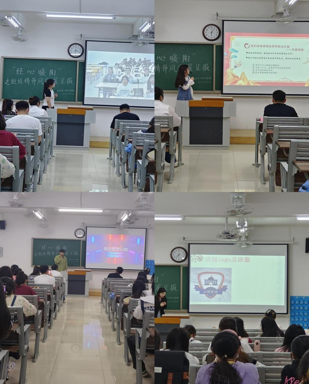 本次活动是心理系列活动的收官活动,也是展示经管学子的班级精神面貌的活动。活动于5月4日在二教406开展。出席本次活动的评委有院团总支书记叶赵强、管理学支部书记石园园、辅导员张雨停老师、邓金鑫老师、王绎程老师、学生代表王杰。各参赛班级汇报人以及班级各班级代表参加本次活动。活动由21级经济学二班窦惠颖主持。