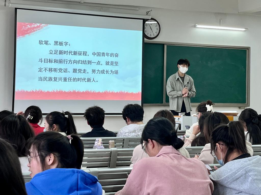 为深入学习贯彻党的二十大精神,增强文化自信,感受中国书法的艺术之美和传统文化的独特魅力,展现当代大学生的文化和技能素养。5月10日下午,教育学院举办第一届“笔迹书青春”主题书法比赛,辅导员郭鸿鑫老师主持了开幕仪式,学院共285名同学报名参加,其中硬笔书法在1号教学楼520室和521室开展,软笔书法在1号教学楼514室开展,黑板粉笔字在1号教学楼308、309等19个教室开展。本次比赛以“新时代爱国青年”为主题,设有硬笔、软笔、黑板粉笔三个项目,参赛选手现场在40分钟内完成对一段指定内容的书写。
