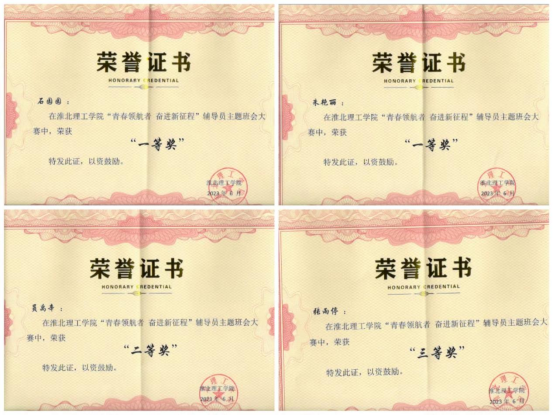 决赛现场精彩纷呈,虽然只有短短10分钟比赛时间,但是充分展现了辅导员运用自己的专业知识及在工作中累积的案例,引经据典,合理架构,班会主题内容丰富,涵盖防诈骗、网络安全、学风建设、职业生涯规划、求职技巧等,完美呈现了一堂堂寓意深刻、内涵丰富、形式多样的主题班会。经过激烈角逐,我院辅导员朱艳丽、石园园荣获一等奖,辅导员员禹辛荣获二等奖,辅导员张雨停荣获三等奖,并且我院荣获优秀组织奖。