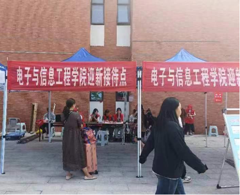 早在几天前,电子与信息工程学院就着手布置迎新活动,对新生引导和安排流程进行了统一规范。学生会同学制作了防电信诈骗的宣传单,提醒新同学们在开启新学期旅程的同时,也不能降低警惕,要时刻将防诈骗意识铭记于心。教学楼、宿舍楼、食堂、商业街、快递站等地也悬挂起“热烈欢迎2023级新生”的温馨横幅。
