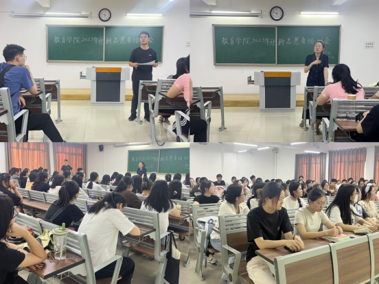 9月7日下午,教育学院在1号教学楼420,举行学生党员、迎新志愿者培训会,学院书记助理黄莹莹、团总支副书记许海涛参加了培训会。会上,进一步明确了迎新志愿者的工作任务与责任分工,从氛围营造、组织宣传、场地布置、人员分工、后勤保障和志愿服务各个方面部署迎新工作,黄莹莹老师强调各部门要统筹分配、团结协作,各位党员同志要充分发挥模范带头作用,对新生开展志愿帮扶,确保迎新工作有序有力。