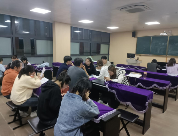 10月10日下午,教育学院汉语言文学专业学生第二党支部在艺术楼301教室开展党员学习研讨活动。活动由支部书记张颖颖同志主持,全体党员进行分组讨论学习。