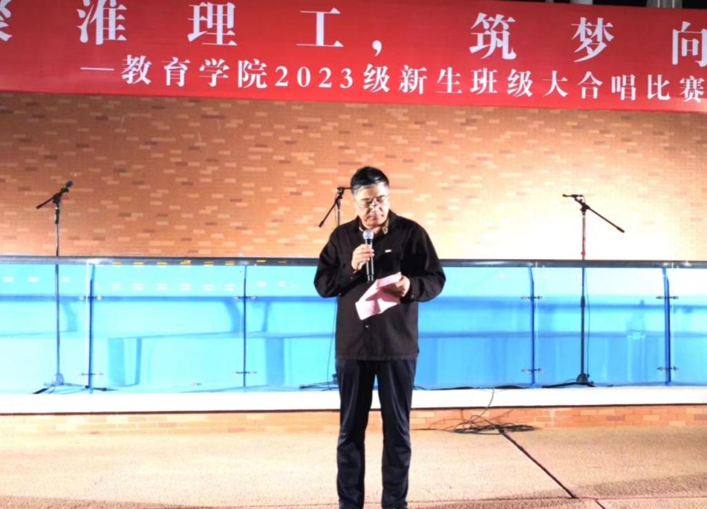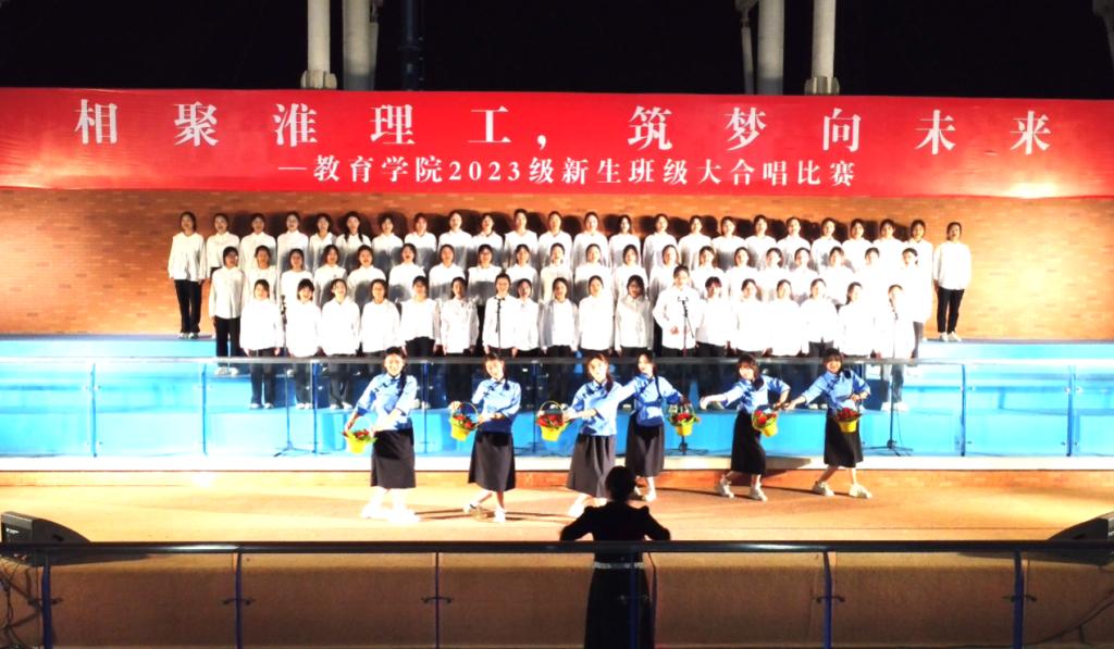 为了帮助2023级新生更好地融入大学生活,增强班级集体荣誉感与团队意识,展现青年学生朝气蓬勃、团结一致、开拓进取的精神风貌,营造浓厚的校园艺术教育氛围,教育学院于10月27日晚在操场举办了“相聚淮理工,筑梦向未来”2023级新生班级大合唱比赛。学校副校长汪建利、副校长郑来纪、教务处处长陈国平、科技处侯为波、学生处副处长兼招生办主任张拓、校团委书记刘帅克、经管学院书记助理叶赵强、教育学院院长(党总支书记)王家云、党总支副书记孟向红、学院全体辅导员老师及2023级新生参加了本次活动。