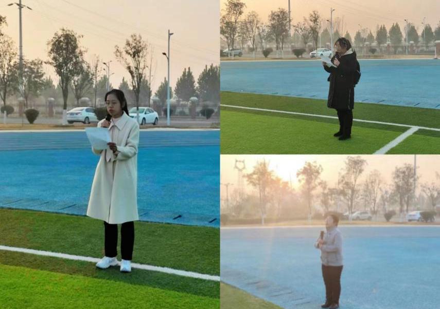 升旗礼毕,在班级“普法、修德、遵纪,创建文明校园”演讲比赛中脱颖而出的两位同学进行了国旗下的演讲。2023级汉语言文学专业6班的苏佳佳同学以“秉承法纪法规,净化网络风气”为主题进行演讲,呼吁和倡导同学们学会利用法律武器维护自己的合法权益,网络空间发言更应注重事实真实性,避免传播虚假信息和发表言辞激烈、情绪化以及不负责任的言论。2023级汉语言文学8班李心月同学以“明德守纪,笃行添彩”为主题,强调同学们应遵规守纪,修身笃信,加强素质修养,提高道德水平,网络空间发表言论时也同样应遵循法律和道德的底线,倡导大学生更应该学会自我约束,坚守行为准则,积极进取,倡导社会主义核心价值观,弘扬传播正能量,共创和谐、法治、美丽校园。