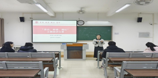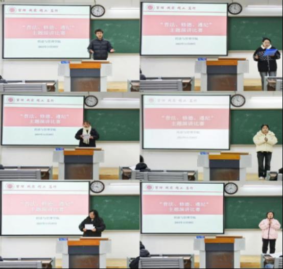 为提升我院学生的法律意识、德育观念、遵纪观念,11月29日下午三点经济与管理学院于一教214举办“普法、修德、遵纪”演讲比赛,比赛的评委为辅导员担任,共计19位来自不同专业的参赛选手。