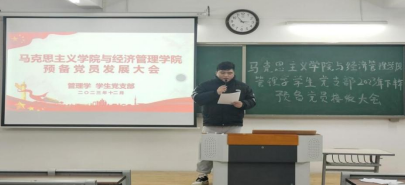 为进一步加强党员队伍建设,根据发展党员工作计划,经上级党委预审同意,经济学学生党支部、管理学学生党支部于2023年12月15日下午,分别在二教422、423教室召开预备党员发展大会。本次大会坚持公开、公正、公平的原则,严格按照党员发展程序规定开展。会议采取线上线下相结合的方式进行。本次会议由支部委员会成员刘良晨和周莉文主持。