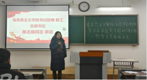 本次大会管理学支部由经济与管理学院党总支青年委员、书记助理叶赵强同志、经济学支部由马克思主义学院书记助理、教工支部书记陈志操同志分别代表总支参加本次支部整个活动。陈志操老师在讲话中强调,青年党员要全心全意为人民服务,严格要求自己,时刻保持先锋模范作用。始终牢记党的宗旨,努力成为一名优秀的共产党员。