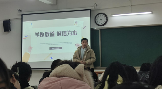 会议上,辅导员们结合班级情况,利用PPT为同学们讲解了诚信考试的重要性,指出诚信是中华民族的传统美德,也是每个学生应当遵守的行为准则。考试是检验同学们学习成果的重要方式,同时也是检验同学们道德品质的试金石,引导同学们正确看待期末考试。辅导员们告诫大家,在考试中,诚信不仅是对自己学业的尊重,更是对他人努力的认可,只有坚持诚信原则,才能树立良好的学风、考风,促进公平竞争。倡导同学们以实际行动践行诚实守信,把考试作为检测学习成效的重要途径,达到以考促学、以考促行。