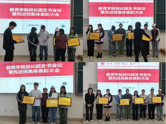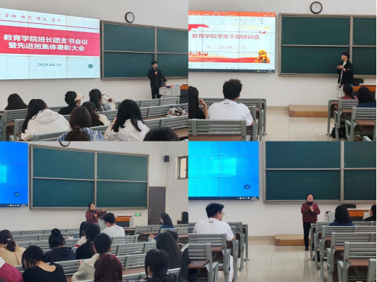 为进一步提高班长团支书业务能力,培养学生干部综合素质,强化学生干部队伍建设,促进学院学生管理工作更好开展。教育学院于4月18日中午在1号教学楼121教室召开班长、团支书会议暨先进班集体表彰大会。本次会议由学院团总支副书记许海涛主持,学院分管副书记孟向红、书记助理黄莹莹、辅导员以及非毕业班班长、团支书参加了会议。