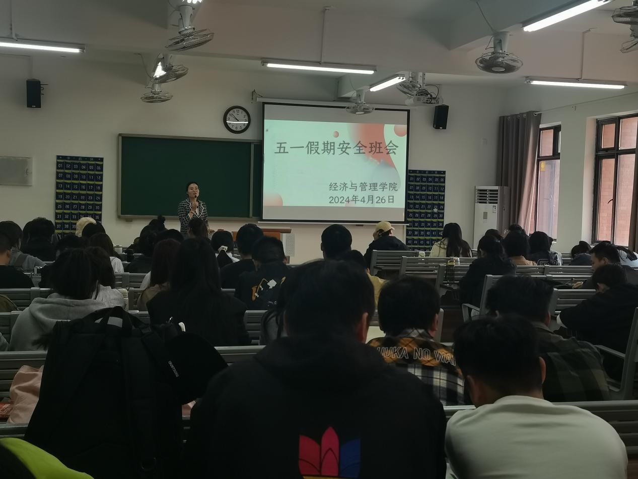 五一假期将至,为了筑牢安全防线,持续加强对学生的日常教育管理、消防安全、交通出行、饮食健康、心理健康、电信网络防诈等常态化主题教育,提高学生安全防范意识,确保学生安全,经济与管理学院于4月24日至25日晚在全院开展“五一劳动节假期安全”主题班会,全院42个班级参与本次主题班会。