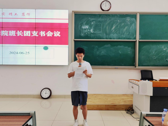 22级英语3班班长张克武、23级汉文8班团支书王雨露分别在会上做了交流发言,分享了班级和团支部的工作经验。