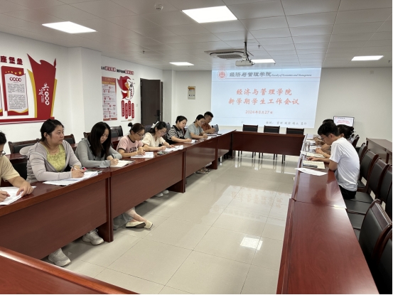 为确保新学期学生工作的顺利开展,经济与管理学院于8月27日下午在学院725会议室召开新学期学生工作会议。经济与管理学院党总支书记、院长吴玲主持本次会议,副院长秦品德、书记助理叶赵强,以及全体辅导员参加本次会议。