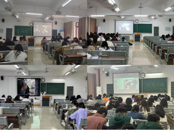 为深入学习宣传党的二十大和二十届三中全会精神,宣传习近平强军思想,贯彻总体国家安全观,激发广大学生关心国防、热爱国防的热情,提高同学们的爱国主义精神和国防安全意识,10月8日至9日,教育学院积极组织学生参加以“依法开展全民国防教育,提升全民国防素养”为主题的2024“国防万映”公益展映活动,2024级新生班级在1教固定教室,其他班级在非固定教室组织观看。