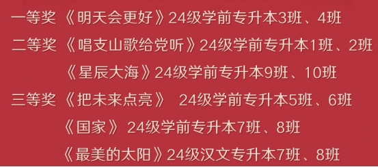 本次大合唱的十七支队伍不仅唱响礼赞新中国、奋进新时代的昂扬旋律,饱含着对伟大祖国的美好祝福,还展现了教育学院学子凝心聚力、实干笃行、昂扬向上的精神风貌,激励同学们在新的人生阶段砥砺前行,昂扬奋斗。