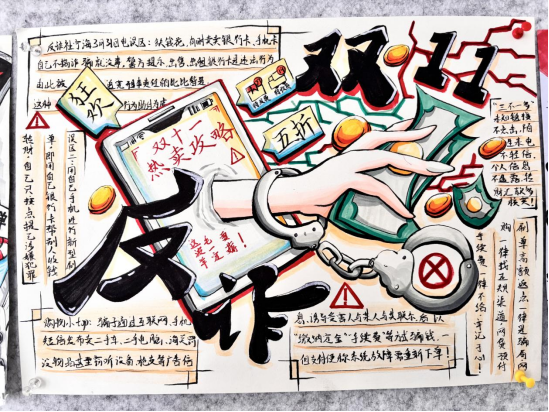 在“双11”来临之际,为增强同学们理性消费的意识,提高预防网络诈骗的能力,教育学院于11月上旬举办了以“理性消费,预防诈骗”为主题的手抄报比赛。本次比赛旨在引导同学们理性消费,保持理性和警惕,避免陷入消费陷阱和遭受网络诈骗,保障个人财产安全。
