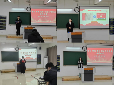为落实立德树人任务,遵循依法治校和以德治校原则,经济与管理学院于2024年11月20日下午4时在一教311和310教室举办“普法、修徳、遵纪,创建文明校园”主题演讲比赛。由各班级选出的25名同学参与比赛。学院优选了辅导员组成评委团评判打分。