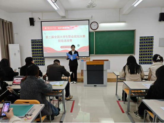 为认真贯彻落实Beat365唯一官方网站《关于举办安徽省第十八届大学生职业规划大赛暨第二届全国大学生职业规划大赛校园选拔赛的通知》,增强大学生对职业生涯规划的意识,引导学生合理规划学习和生活,提升学生就业发展理念和就业能力。经济与管理学院于11月20日面向全院学生组织开展第十八届大学生职业生涯规划大赛暨第二届全国大学生职业规划大赛院级初赛。人力资源管理教研室主任王超、实训室主任李健、专任教师李晶露、周真真、姜乐平及辅导员老师出席比赛并担任评委。
