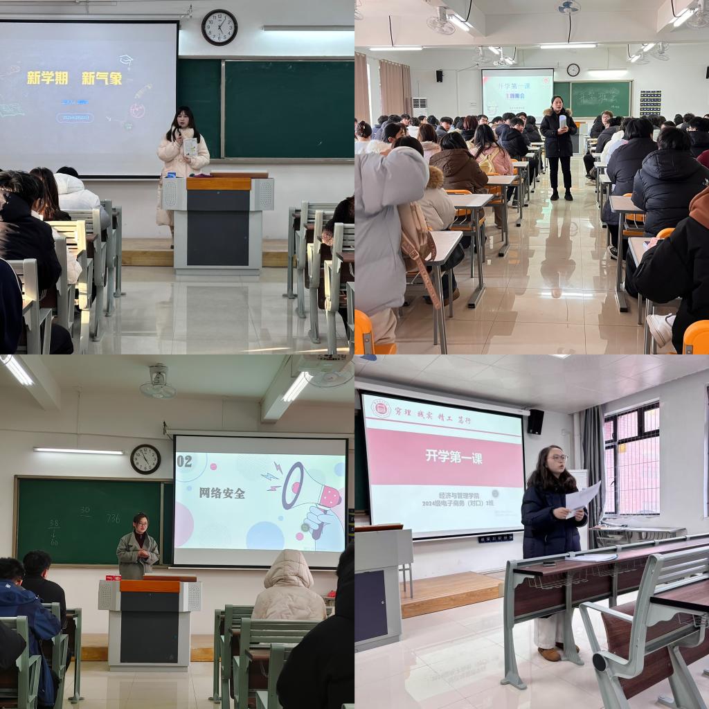 全体辅导员在开学前日召开新学期主题班会,聚焦班风学风建设、安全教育强化、学业规划指导等方面。一是明确“三带”要求,强调课堂纪律;二是通过案例讲解防诈骗、宿舍用电、交通安全知识;三是解读新学期教学日历,提醒补缓考时间,引导学生制定新学期学习计划。