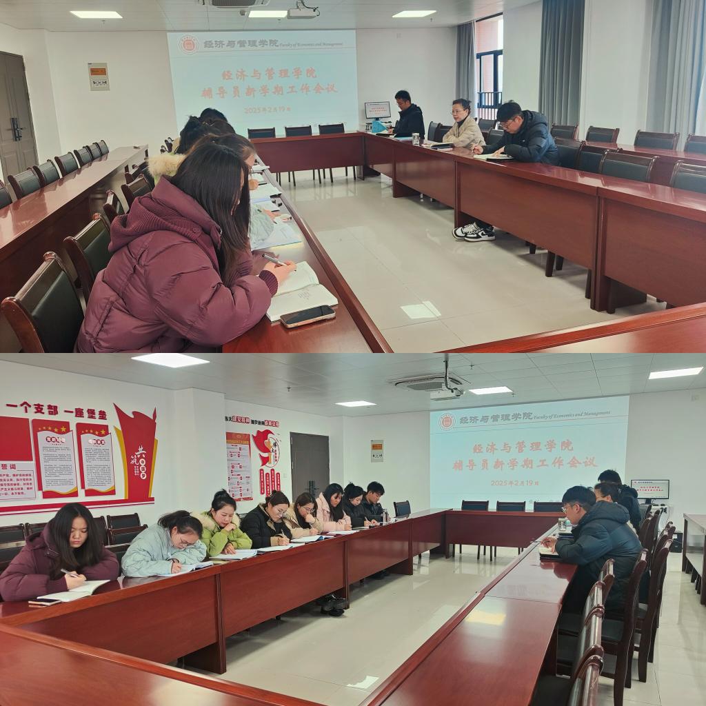 为全面部署和落实新学期学生管理重点工作,经济与管理学院2025年2月20日在行政楼725会议室召开了辅导员新学期工作会议。院长助理叶赵强、书记助理员禹辛、团总支书记王绎程及全体辅导员参会,会议由院长吴玲主持。