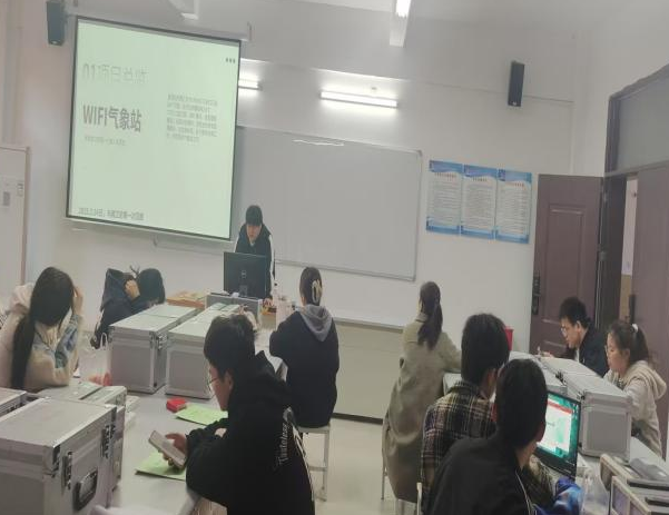 在实训过程中,学生们聚焦WIFI信号干扰、传感器校准误差、低功耗优化等实际问题,共同探索并提出创新解决方案。例如,采用动态功耗管理算法降低设备能耗,运用数据滤波补偿技术提高传感器数据的准确性。在功能演示环节,气象站实时数据通过LED屏幕同步显示,动态图表直观展现环境参数变化趋势,其创新性和实用性引发了老师们的浓厚兴趣。