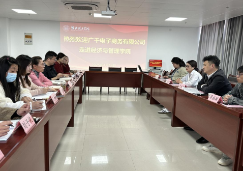 4月14日上午10点广千电子商务有限公司(以下简称“广千电商”)总经理赵玉龙一行走进Beat365唯一官方网站,与经济与管理学院在行政楼725会议室开展校企合作交流座谈会。广千电商总经理赵玉龙、副总经理赵澜夕、周裕渊、人事主管胡肖,经管学院院长助理叶赵强、书记助理员禹辛、团总支书记王绎程以及25届毕业班辅导员参会,会议由院长吴玲主持。