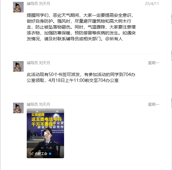随着网络成为学生生活的重要组成部分,辅导员们积极“进群”,融入学生网络生活,搭建起与学生沟通的新桥梁。通过加入班级群,辅导员们及时了解学生在网络上的思想动态,引导学生正确使用网络资源,传播正能量。