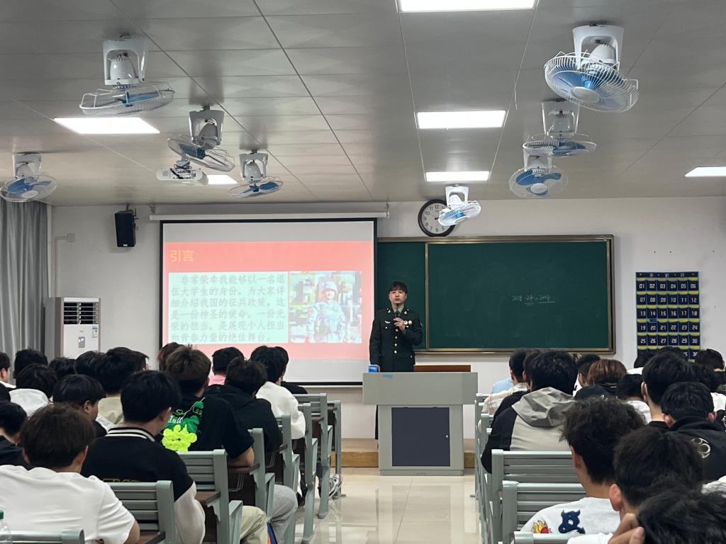 宣讲会伊始,退伍士兵季克志同学作为特邀嘉宾,分享了自己丰富多彩又充满挑战的军旅生活。他深情讲述了在部队中经历的艰苦训练,从最初的不适应到逐渐成长为一名坚毅的战士,每一个故事都扣人心弦。在体能训练时的艰辛与坚持,以及与战友们结下的深厚情谊,都让同学们深刻感受到军队生活的独特魅力。季克志感慨地说:“部队是一座大熔炉,它不仅锻炼了我的体魄,更塑造了我的灵魂,让我懂得了责任与担当。”他的分享让在场的同学们对军旅生涯充满了向往。